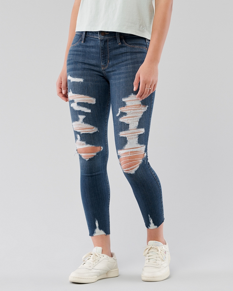 Hollister Size 5 Medium Wash Skinny Jeans Womens Jeans Skinny Super Skinny Ripped Jeans Stretchy Skinny Jeans